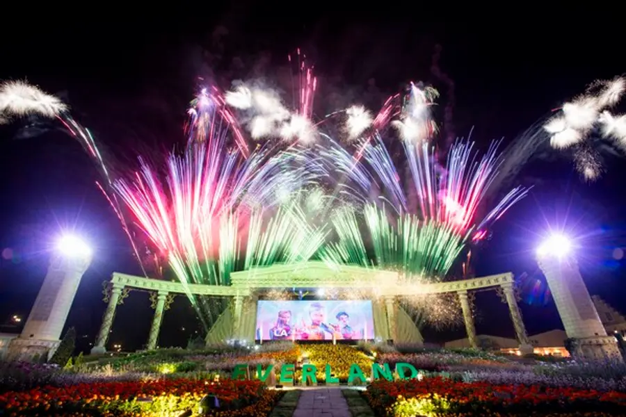 먼저 지난 12일부터 에버랜드는 '골든(Golden)', '하우 잇츠 던(How It’s Done)', '소다 팝(Soda Pop)', '유어 아이돌(Your Idol)' 등 영화 속 히트곡들과 수천 발의 불꽃, 영상, 특수효과 등이 어우러진 신규 야간 공연 '케이팝 데몬 헌터스 싱어롱 불꽃쇼'를 새롭게 론칭했다.