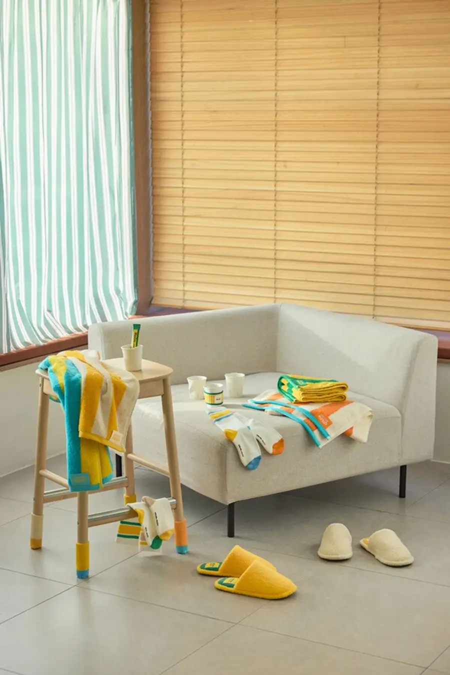 ‘컬러 오브 맥심’은 타월, 슬리퍼, 양말, 의자양말, 컵 등 일상에서 친숙한 아이템에 일상 속 소소한 행복을 전하고자 하는 맥심의 감성을 입혔다.