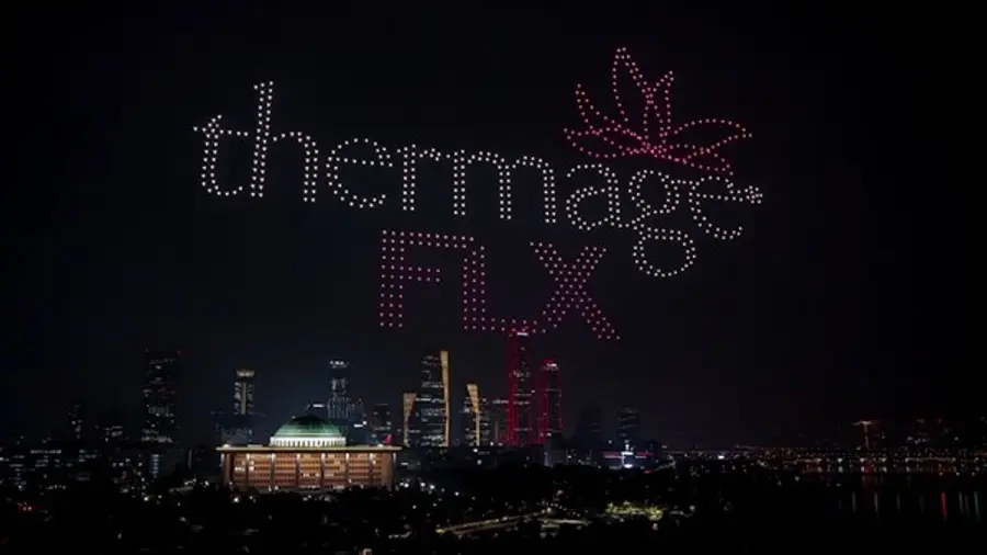 써마지 글로벌 누적 500만 건 시술 달성을 기념해 열린 이번 행사는 총 700여 대의 드론이 투입되어 써마지 팁과 독자적 기술력인 AccuREP™, 브랜드 로고와 축하 메시지 등을 밤하늘에 형상화하며 장관을 연출했다.