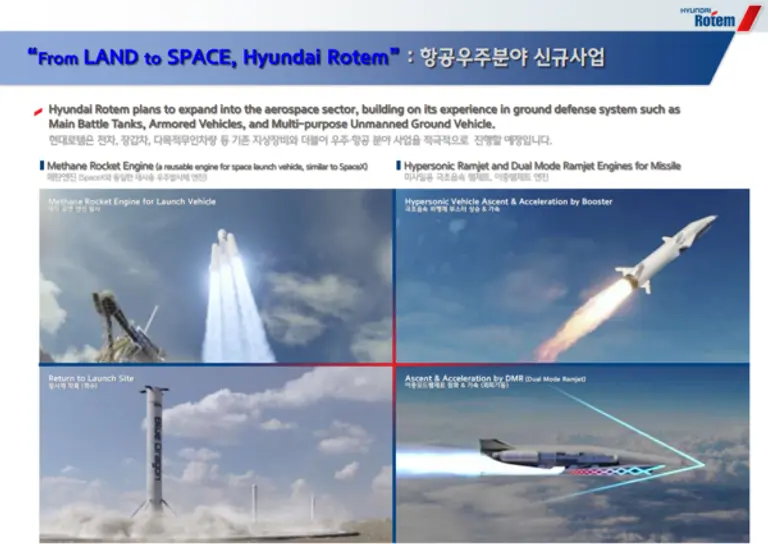 현대로템은 당시 전시회에서 메탄엔진, 덕티드 램제트 엔진, 극초음속 이중램제트 엔진 등 우주 발사체와 유도무기 등의 비행체에 탑재되는 항공우주 사업의 주요 제품들을 공개했다.