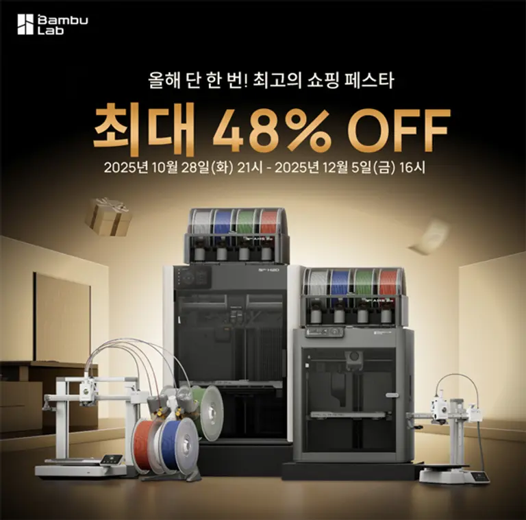 이번 행사는 주요 3D 프린터 제품을 최대 48% 할인된 가격에 선보이는 대규모 이벤트다.