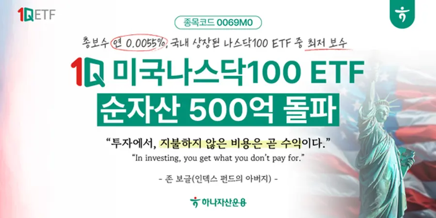 |스마트투데이=김세형 기자| 하나자산운용(대표이사 김태우)은 ‘1Q 미국나스닥100 ETF’ 순자산이 500억원을 돌파했다고 7일 밝혔다.