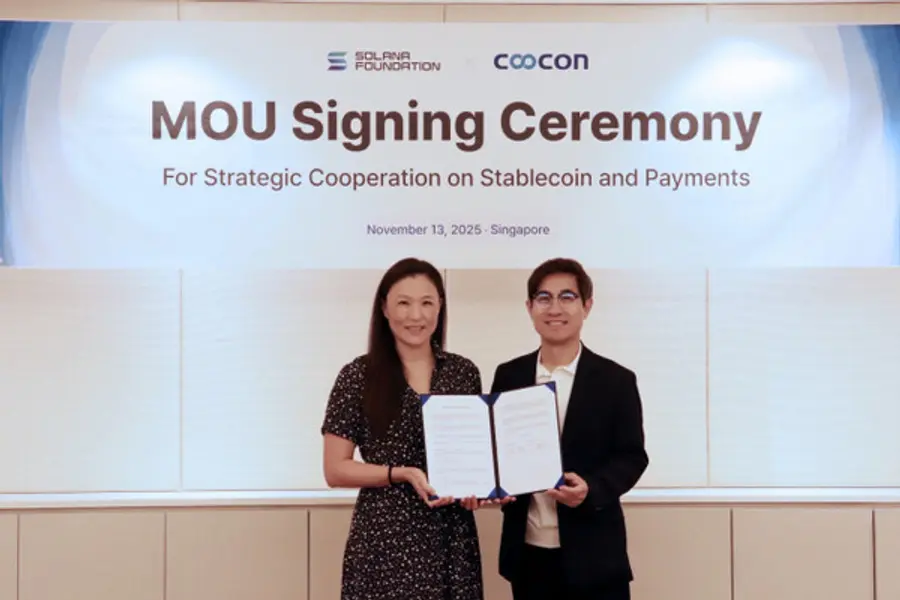 |스마트투데이=김세형 기자| 쿠콘은 싱가포르에서 솔라나 재단(Solana Foundation)과 스테이블코인 기반 결제 솔루션 개발 및 글로벌 결제 인프라 확장을 위한 전략적 업무협약(MOU)을 체결했다고 14일 밝혔다.