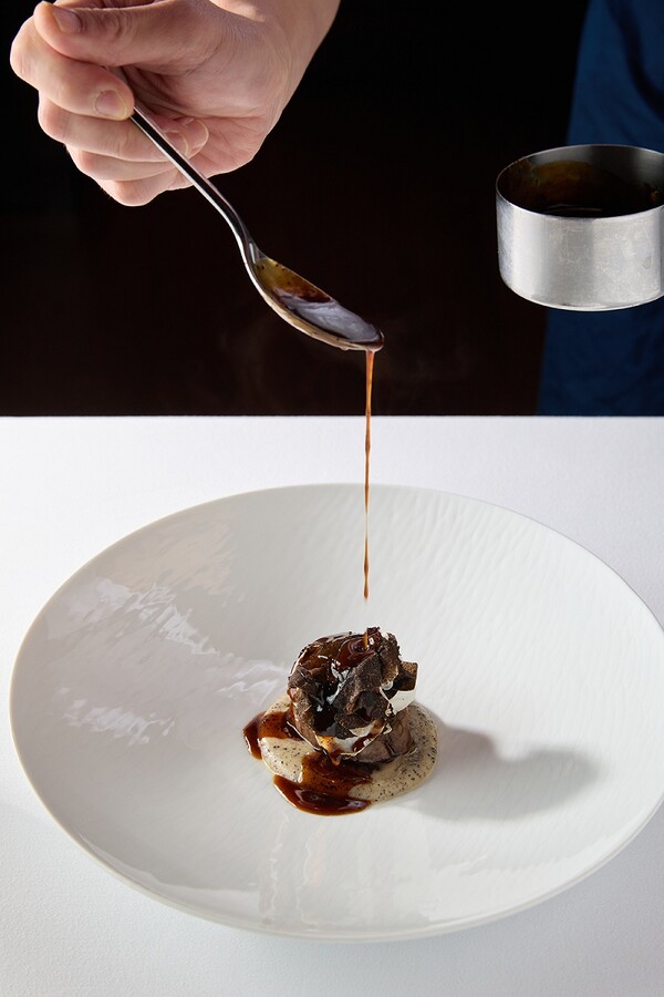 이어 제공된 ‘블루 랍스터와 겨울 가든 채소들’은 테라코타의 붉은 컬러감을 차용해 시각적 즐거움을 더했으며, ‘한우 안심과 블랙 트러플’에서는 매시드 감자를 활용해 클레이 컬러를 메뉴에 은은하게 접목한 것이 돋보인다.