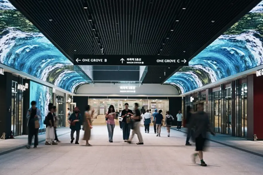 이지스자산운용은 마곡역과 마곡나루역을 잇는 총 길이 750m의 지하 공공보행통로 중 원그로브 구간 147m를 ‘그로브웨이(The Grove Way)’로 조성해 운영 중이다. 이 구간에는 대형 곡면 LED가 설치돼 시각적 몰입감을 제공하며, 단순한 이동 통로를 넘어 전시·공연·이벤트가 가능한 문화 공간으로 활용되고 있다.