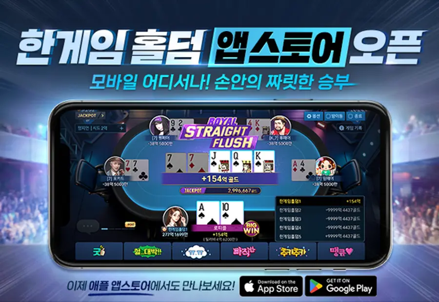 지난 9월 AOS 버전이 구글 플레이스토어에 먼저 출시된 ‘한게임 홀덤’은 젊은 이용자층의 호응까지 더해지면서 순조로운 출발을 알렸다. 이번 iOS 버전 론칭을 통해 이용자는 언제 어디서나 모바일로 짜릿한 승부를 겨룰 수 있게 되었다. 이후에도 ‘한게임 홀덤’은 이용자의 재미와 편의성 강화를 위해 지속적으로 업데이트를 이어갈 계획이다.