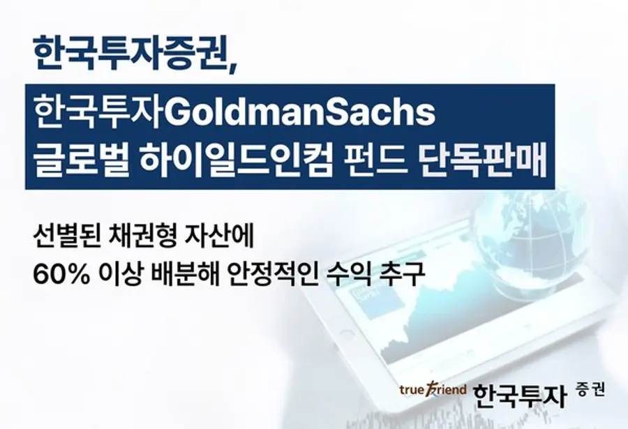 |스마트투데이=김세형 기자| 한국투자증권(사장 김성환)은 골드만삭스자산운용이 위탁 운용하는 해외채권형 펀드 ‘한국투자 골드만삭스 글로벌 하이일드인컴 펀드’를 단독 판매한다고 27일 밝혔다.