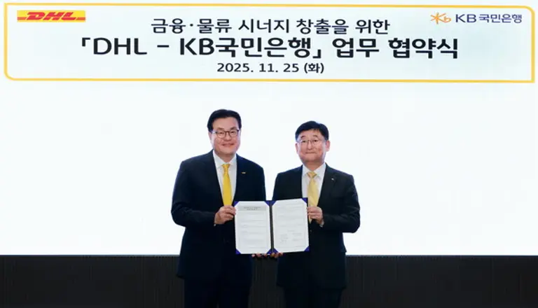 |스마트투데이=강민주 기자| KB국민은행(은행장 이환주)은 지난 25일 DHL코리아(대표이사 한지헌)와 ‘금융·물류 시너지 창출을 위한 업무협약’을 체결했다고 28일 밝혔다.
