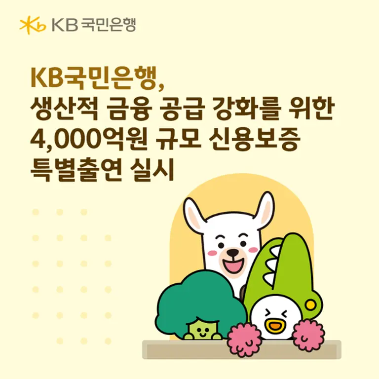 KB국민은행은 오는 5일부터 총 140억원(신·기보 특별 출연금 각 50억원, 보증료 지원금 각 20억원)의 출연을 통해 협약 보증서를 담보로 약 4000억원 규모의 대출을 지원한다.
