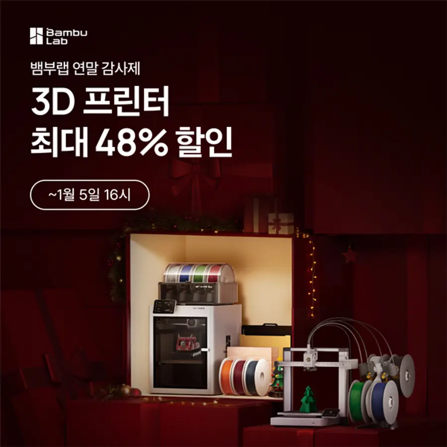 |스마트투데이=김윤진 기자| 데스크톱 3D 프린터 전문 브랜드 뱀부랩(Bambu Lab)이 내년 1월 5일까지 연말 감사제 할인 프로모션을 진행한다고 5일 밝혔다.