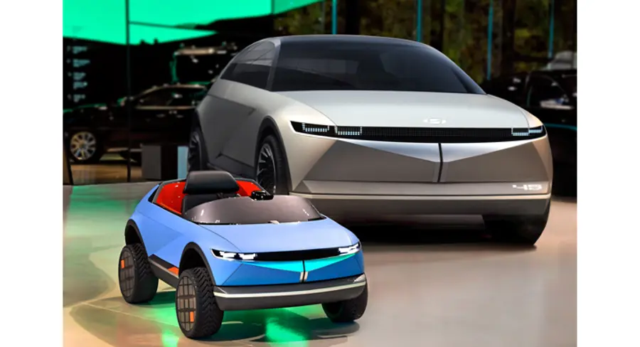 특히 어린이 전동차의 헤드램프와 테일램프를 구성하는 ‘파라메트릭 픽셀(Parametric Pixel)’은 EV 콘셉트카 '45'의 핵심 디자인 요소 중 하나로, 기하학적 형태의 사각형 점들을 구성해 미래지향적이면서도 한눈에 알아볼 수 있는 강한 존재감을 나타낸다.