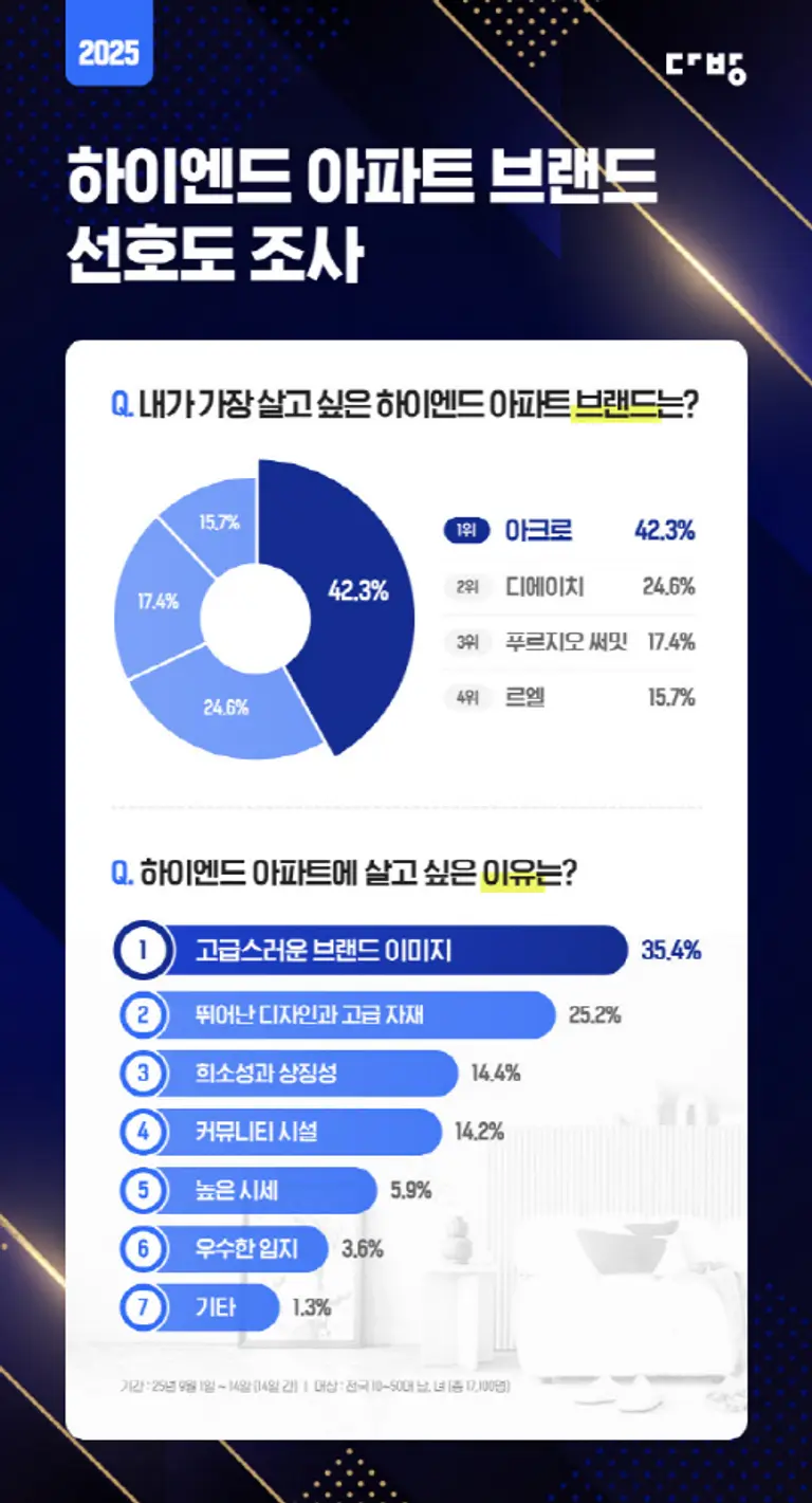 |스마트투데이=김윤진 기자| 가장 살고 싶은 하이엔드 아파트 브랜드는 DL이앤씨가 운영하는 ‘아크로(ACRO)’인 것으로 나타났다.