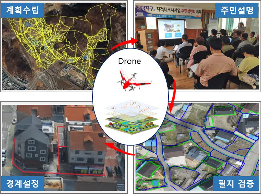 국토교통부는 이러한 주민 숙원사업을 해결하기 위해 올해 19억 원의 사업비를 긴급 지원하고 지적재조사 사업공사기간을 획기적으로 단축하기 위해 드론 측량기술을 전격적으로 적용하게 되었다.