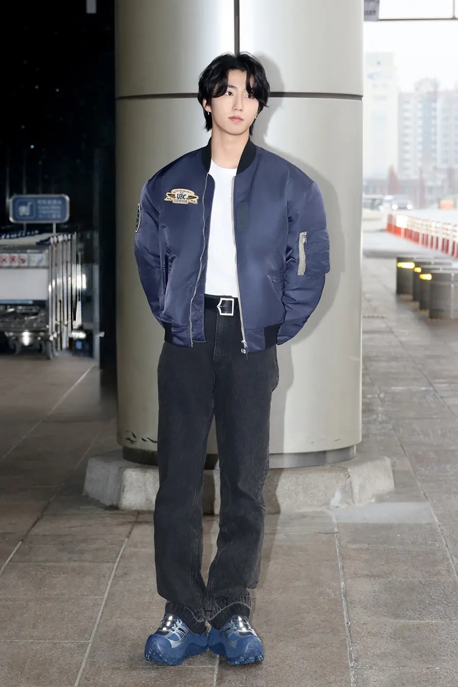 그룹 스트레이 키즈(Stray Kids) 멤버 한의 공항패션이 화제다.