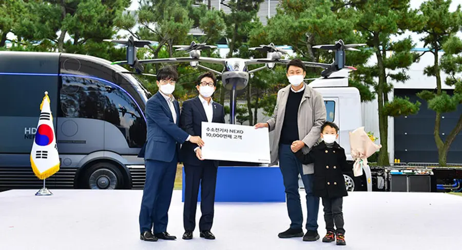 넥쏘 1만 번째 주인공인 임현석씨는 “삼남매를 키우는 다둥이 아빠로서 자녀들에게 깨끗한 환경을 물려주기 위해 넥쏘를 선택하게 됐다”고 차량 구매 이유를 밝혔다.