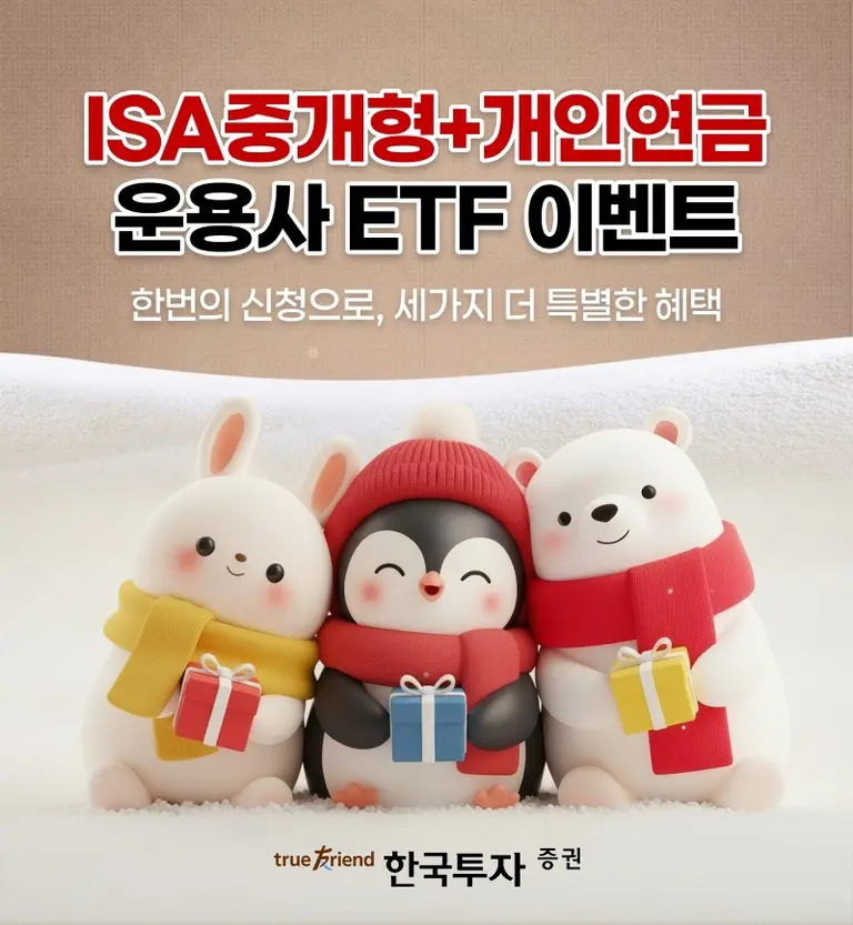 |스마트투데이=김세형 기자| 한국투자증권(사장 김성환)은 내년 1월 31일까지 뱅키스 ISA 중개형 및 개인연금 계좌 고객을 대상으로 ETF 투자 이벤트를 진행한다고 19일 밝혔다.