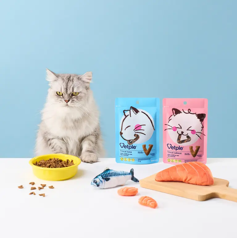 벳플 브이트릿은 양치질이 쉽지 않은 고양이의 특성을 고려해, 매일 즐겁고 맛있게 섭취하면서 구강 관리를 할 수 있도록 설계한 제품이다.
