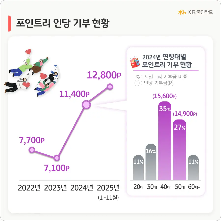 KB국민카드 관계자는“카드 결제와 포인트를 활용한 기부가 일상 속 나눔 문화로 자리 잡았다”며,“올해도 따뜻한 나눔이 한층 확산되길 기대한다”고 밝혔다.