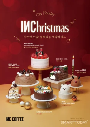 인크커피 가 연말을 앞두고 크리스마스 케이크 사전 예약 판매를 시작하며 오는 12월 18일까지 사전예약 프로모션을 진행한다고 29일 밝혔다. 이번 사전 예약 대상은 ‘딸기 마스카포네 생크림 케이크’ 등 7종으로 홀리데이 장식으로 시즌 분위기를 고조시켜줄 모양으로...