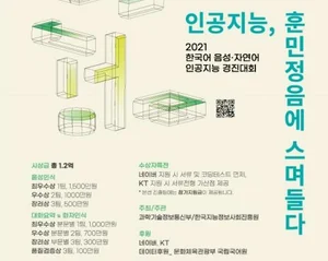 과학기술정보통신부 와 한국지능정보사회진흥원 은 한글날인 10월 9일, ‘2021 인공지능 학습용 데이터 활용 경진대회 개회식’을 온라인(네이버TV, 유튜브 생중계)으로 개최했다고 밝혔다. 이번 대회는 ‘데이터 줄게, 혁신적 인공지능 서비스 다오’를 부제로, 올해 6월...