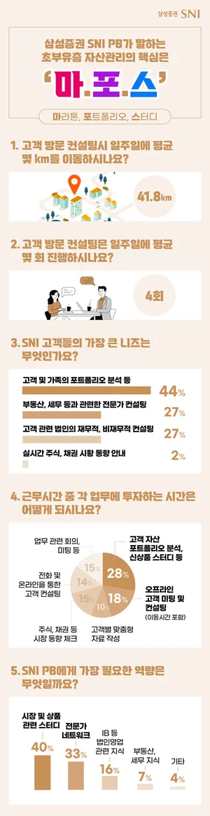30억원 이상 초부유층들은 자산 포트폴리오의 적정성에 대해 가장 큰 관심을 갖고 있는 것으로 나타났다. 26일 삼성증권이 3월초 초고액자산가 전담 브랜드 SNI 소속 PB 100명을 대상으로 실시한 설문조사에 따르면, SNI PB들은 일주일간 평균 4회 고객 오프라인...