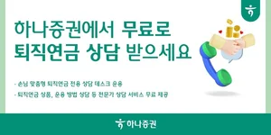 하나증권 은 퇴직연금에 관심있는 손님 누구나 무료로 이용할 수 있는 1:1 전문가 맞춤 서비스를 운영한다고 25일 밝혔다. 이번 서비스 오픈에 따라 퇴직연금 전문가와 1:1 전화 상담으로 퇴직연금 상품과 개인형 IRP, 기업형 퇴직연금(DB, DC형) 운용 방법 등...