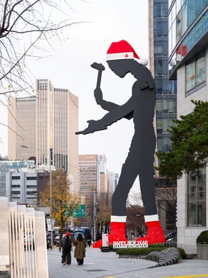 "산타로 변신한 해머링 맨"...세화미술관, '2025 해피 뉴이어 해머링맨' 캠페인 진행