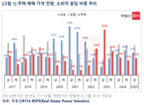 내년 상반기 집값 전망에 대한 설문조사에서 10명 중 3명이 가격이 오를 것이라고 응답했다. 25일 부동산R114가 발표한 "2025년 상반기 주택시장 전망" 설문조사 결과에 따르면 응답자의 32%가 주택가격이...
