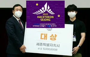 [스마트시티투데이] 전국 최초 대학생을 대상으로 세종시에서 열린 사이버보안 경진대회에서 숭실대 ASC(박성준, 박상준, 이든솔, 문형일)팀이 대상을 차지했다. 세종특별자치시는 지난 11일부터 12일까지 정부세종컨벤션센터에서 ‘제1회 2022 핵테온 세종(2022...