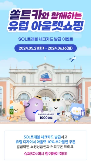 "슈퍼SOL 앱에서 트래블카드 만들면 유럽 아웃렛 10% 할인"