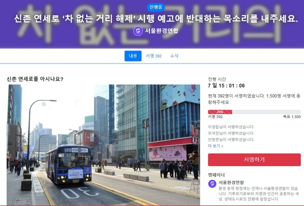신촌 연세로 '차없는거리 해제' 반대 서명..서울환경연합