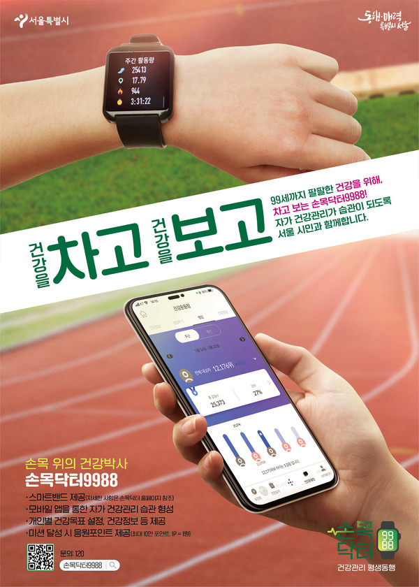 서울시는 5일부터 서울형 헬스케어 ‘손목닥터 9988’ 2기 참여자 총 18만 명을 모집한다. 참여자 폭을 넓히기 위해 신청 연령을 5세(64→69세) 상향했으며, 출산모, 대사증후군, 1인가구 같은 건강취약계층을 위한 특별모집도 실시한다.