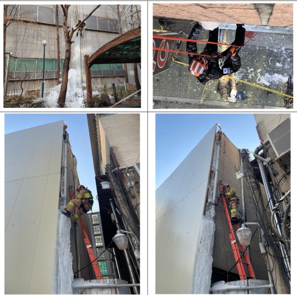 서울시 소방재난본부 관계자는 “당분간 추위가 반복될 수 있는 만큼 건물 외부에 고드름 발생 여부를 꼭 확인해야 한다”며 “높은 곳에 생긴 대형 고드름 등은 무리하게 제거하지 말고 119로 신고해야 한다”고 말했다.