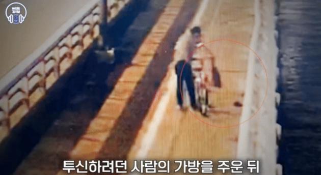 그런데 현장에선 자전거를 타고 마포대교 인근을 지나던 한 남성이 투신을 시도하던 사람의 가방을 주워 달아나는 모습이 포착됐다.