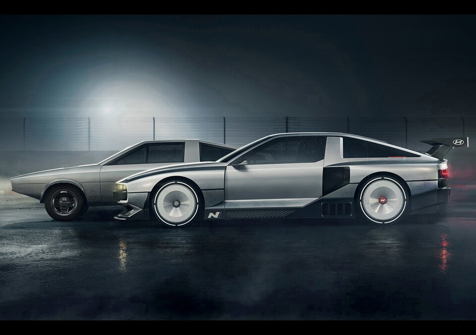 N 비전 74는 고성능차에 대한 현대차 N 브랜드의 중장기적 비전을 담고 있다. 디자인은 현대차가 1974년 선보인 포니 쿠페 콘셉트에서 영감을 받았다. 당시 현대차가 양산하지 못하자 디자인을 맡았던 이탈리안 조르제토 주지아로가 이 디자인을 미국의 드로리안이 활용하도록 넘겼다. 그래서 등장한 차가 영화 '백투더퓨처'에 등장한 드로리안 DMC-12다. 하지만 현대차가 N 비전 74의 양산을 확정하면서 디자인이 제 주인을 찾게 됐다.