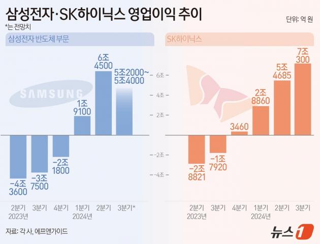 삼성전자 디바이스솔루션(DS, 반도체) 부문은 올해 3분기 4조~5조원 대 영업이익을 낸 것으로 추정되고 있다. 적자인 파운드리 및 시스템LSI를 제외한 메모리 사업부만 놓고 봐도 영업이익은 5조 원대로 전망된다. 이같은 전망이 현실화한다면 SK하이닉스의 3분기 수익은 삼성전자를 제치고 업계 1위로 올라서게 된다.