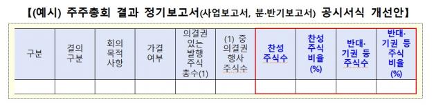 지금은 '해당 안건이 가결됐는지 여부'만 간략히 공개돼 투자자가 표결 흐름을 정확히 알 수 없다는 지적이 많았다.